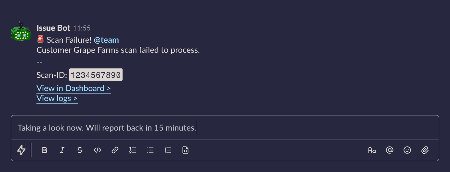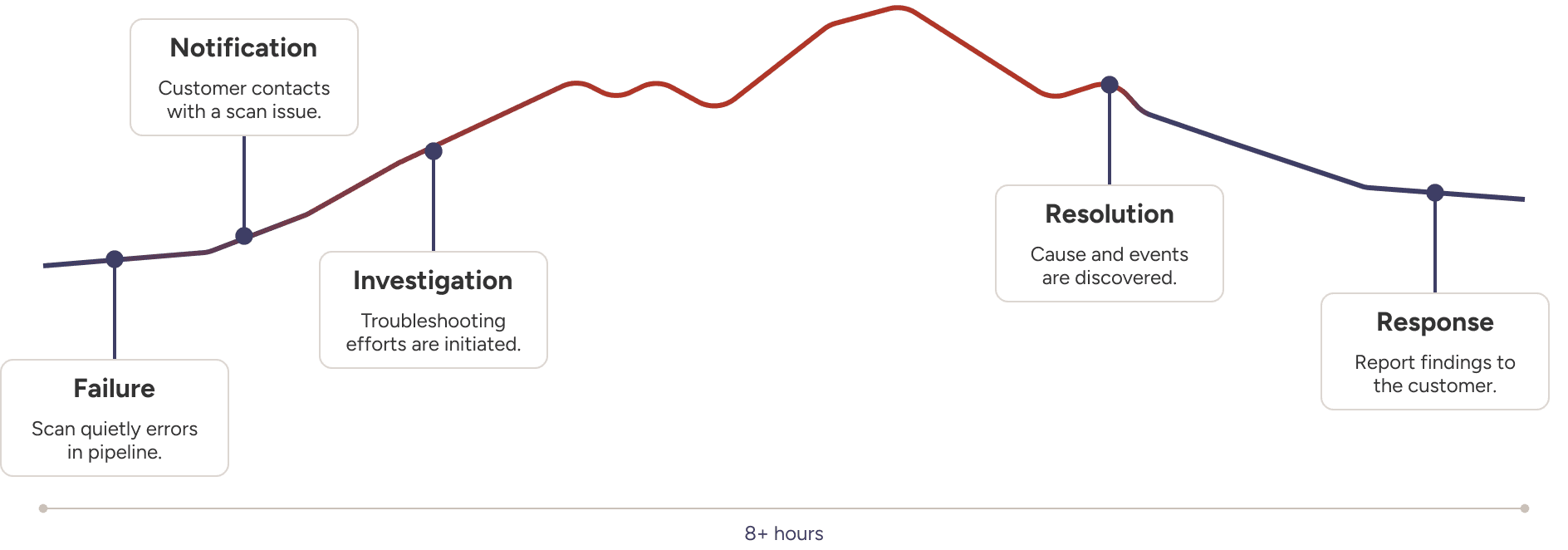 When a scan failed, the first signal was a customer complaint. The issue would travel through a long communication chain before reaching someone who could actually diagnose it. Engineers were pulled off feature work to investigate failures they hadn't seen coming.