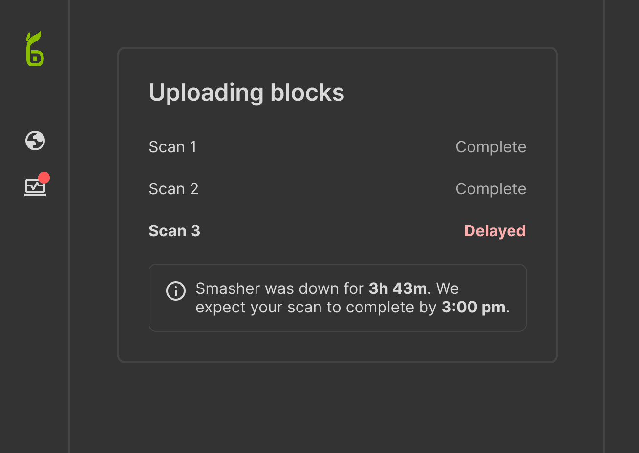 Alerts surface stalled scans automatically, before anyone has to look for them.