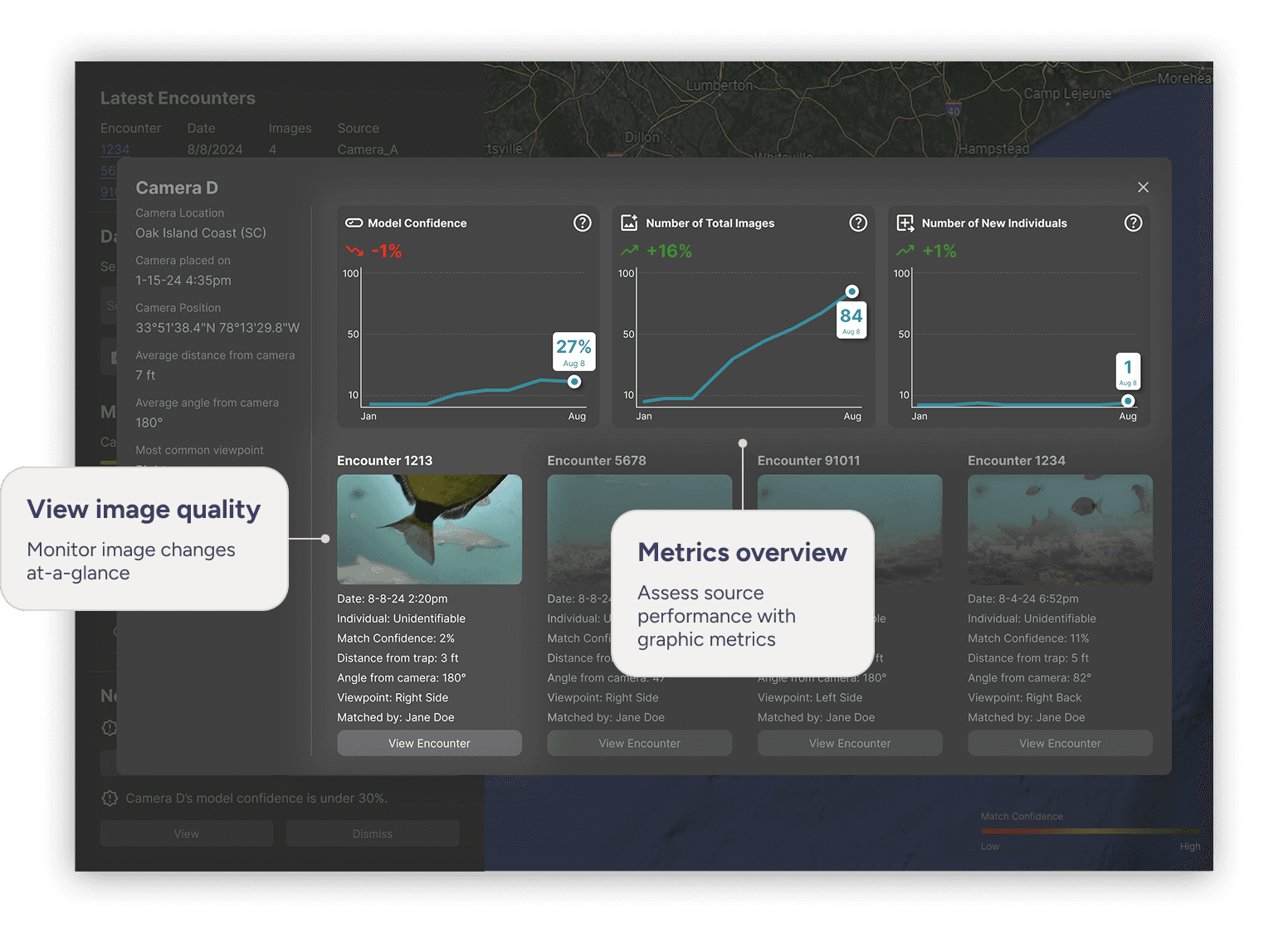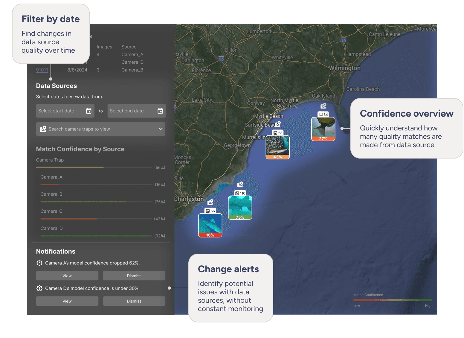 Dashboard surfaces gaps in image source coverage and collection quality across time periods and locations.